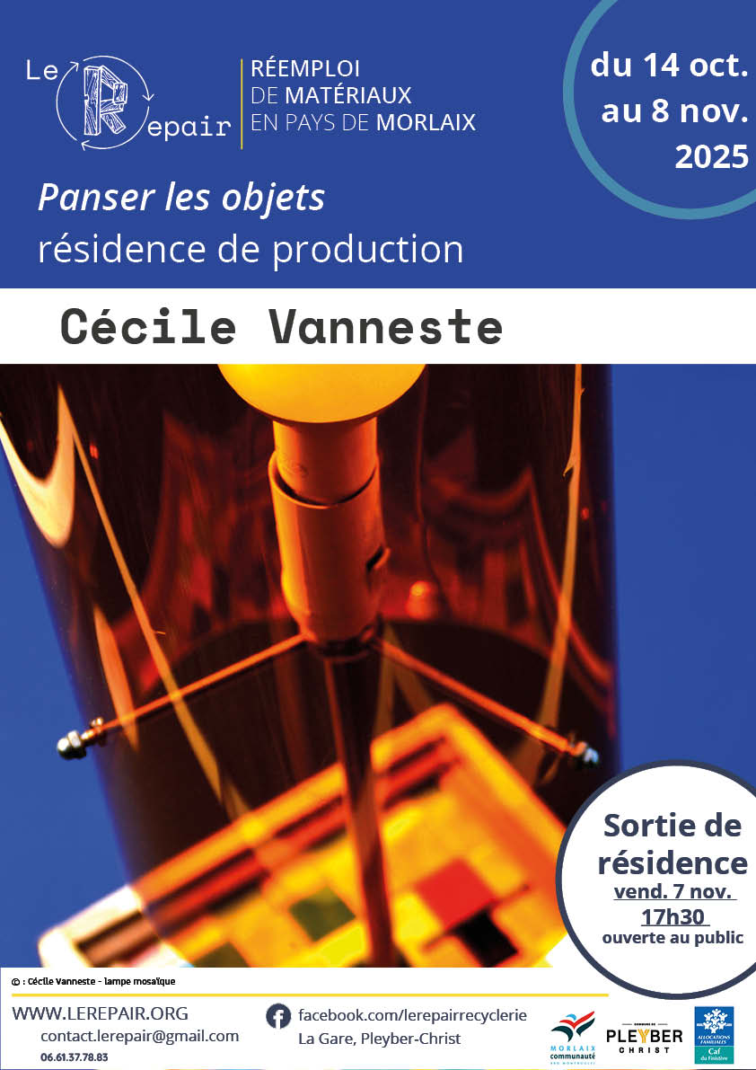 Plasticienne et glaneuse, l’artiste belge, Cécile Vanneste, transforme le réel en œuvres poétiques et engagées. Pendant sa résidence au Repair, elle explorera la « réparation sensible » : donner une seconde vie aux objets abandonnés, honorer les traces du temps et questionner notre rapport à la matière et à l’environnement.