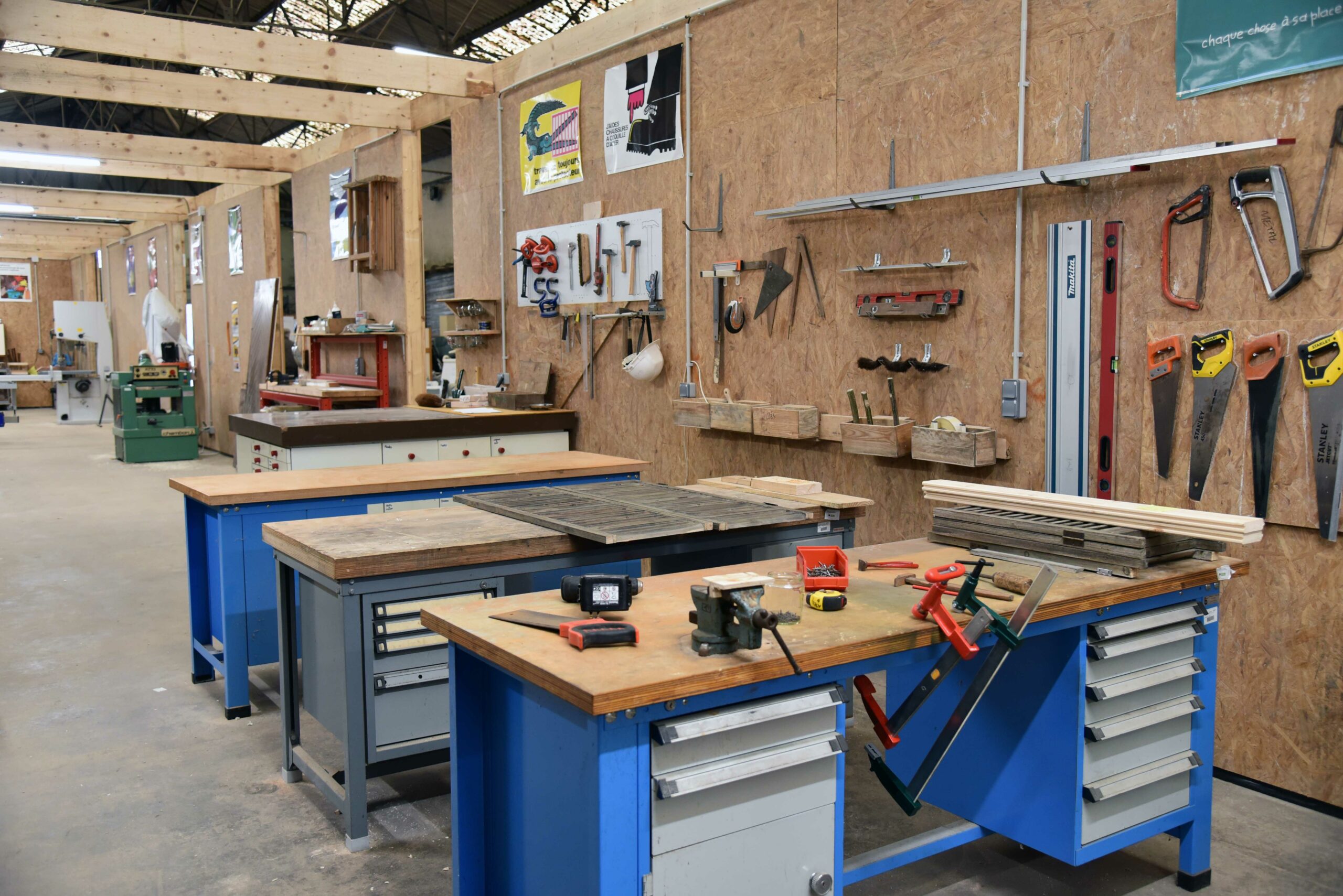 Cet atelier bois & métal accessible au public est équipé de machines et outils permettant de travailler en direct les matériaux mis en vente.